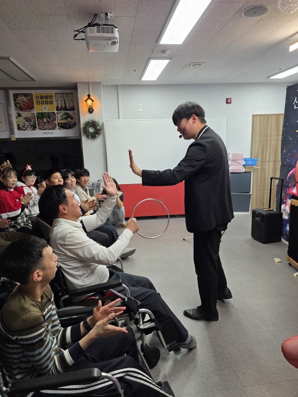또한 이용인분들과 함께 즐거움을 나누기 위해 크리스마스 행사를 진행하였으며, 특히 초청된 출장 마술공연이 큰 호응을 얻었습니다.